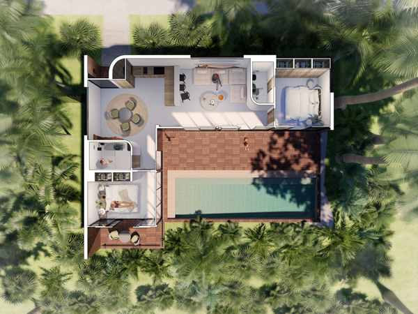 На оформление виллы повлияли пейзажи острова с тропическими лесами, и рисовыми террасами. Вилла будет сдана с отделкой и мебелью, готовая к проживанию или аренде. Вы сможете сразу начать получать доход без промедления. Прогназируемая доходность от аренды: ~ 16% (со 2 года) в долларах.